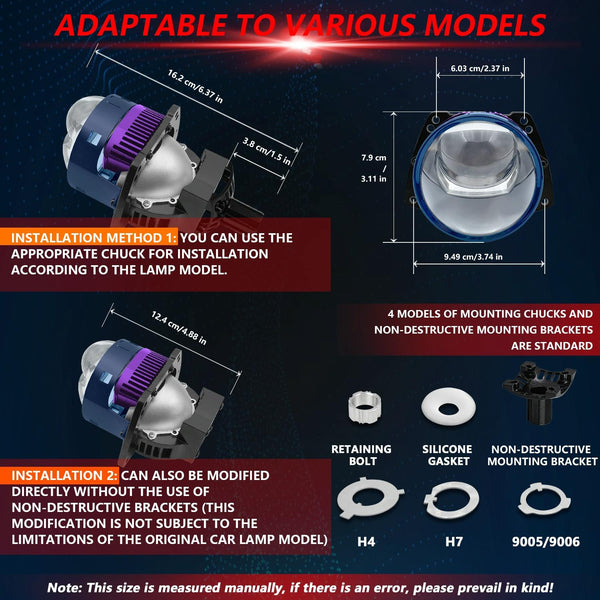 4. Non-destructive installation for direct use, with H4/H7/9005/9006 chuck and 2 types of fixing screws.