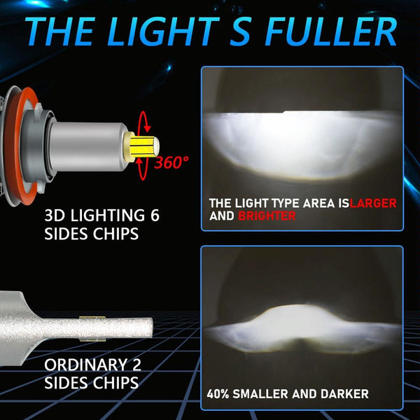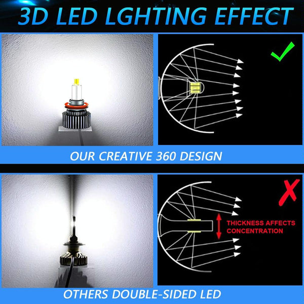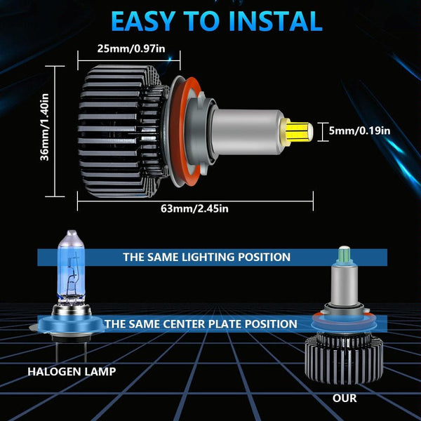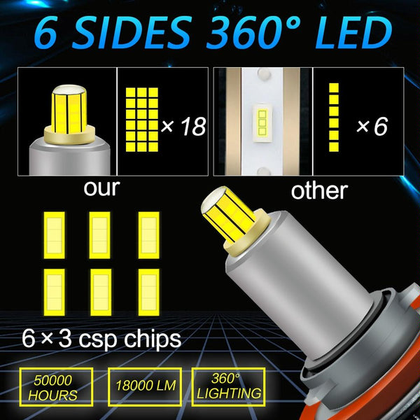 1. 360-degree LED 35W high power: The head of the car light adopts a 6-sided 360-degree LED chip structure and 18 high-power CSP-LED chips, which can emit ultra-high brightness. The light source has no ghosts, shadows or dead corners, and the irradiation range is wider. wide, making night driving safer.