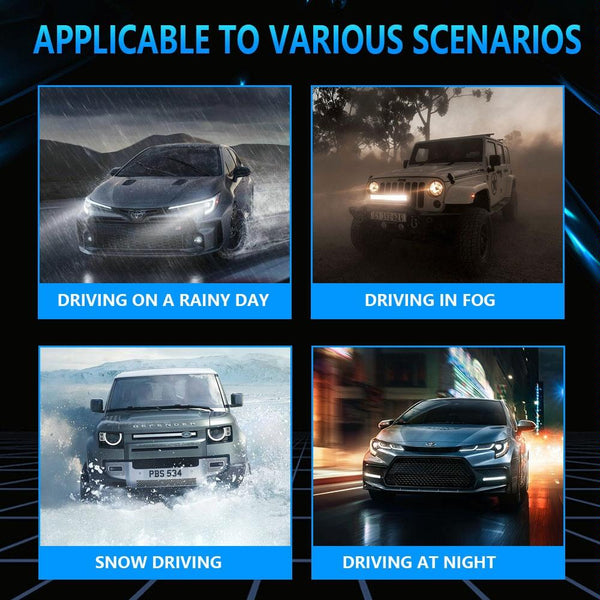 2. Safety beam mode: uses 6000K cold white light, the same design as halogen filament. No glare to oncoming vehicles, no dark spots or shadow areas, reducing your driving stress and fatigue, safe and reliable.
