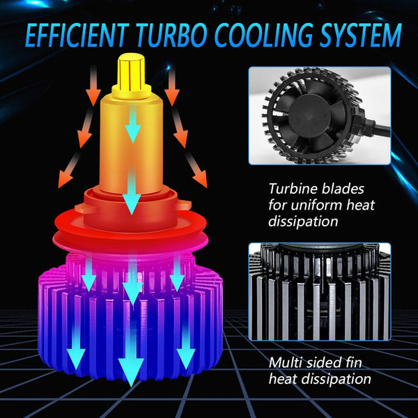 1. 360-degree LED 35W high power: The head of the car light adopts a 6-sided 360-degree LED chip structure and 18 high-power CSP-LED chips, which can emit ultra-high brightness. The light source has no ghosts, shadows or dead corners, and the irradiation range is wider. wide, making night driving safer.