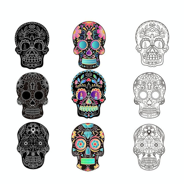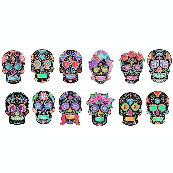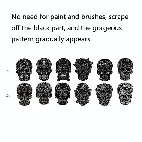 1 Sets Children Colorful Skull Head Halloween Scratch Painting DIY Ornaments Flower Skull Sticker(12 PCS / Set)