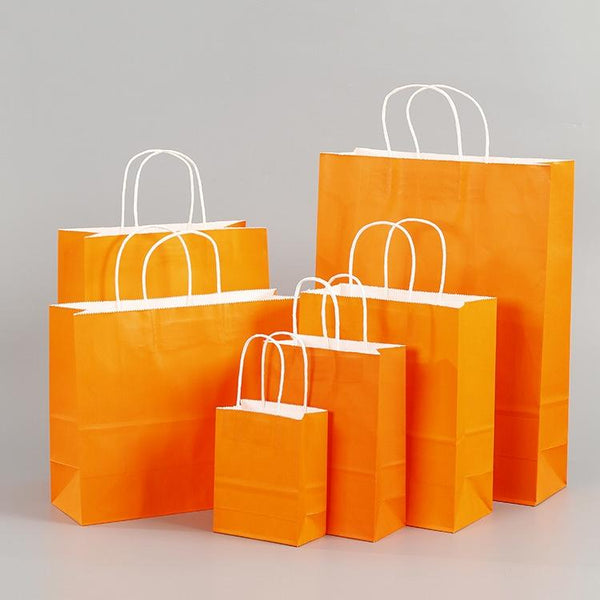 10 PCS Elegant Kraft Paper Bag With Handles for Wedding/Birthday Party/Jewelry/Clothes, Size:16x22x8cm(Orange)