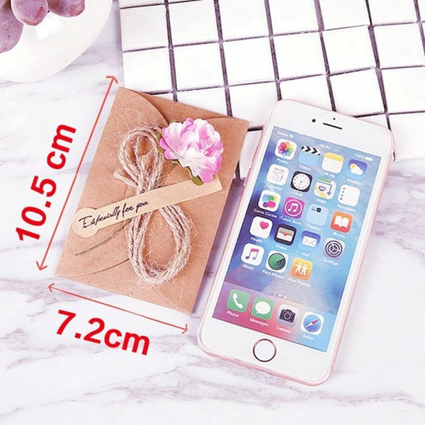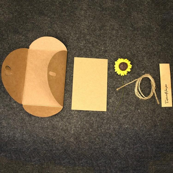 10 PCS Festival Creative DIY Retro Kraft Paper Handmade Small Dry Flower Greeting Card Birthday Card