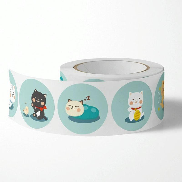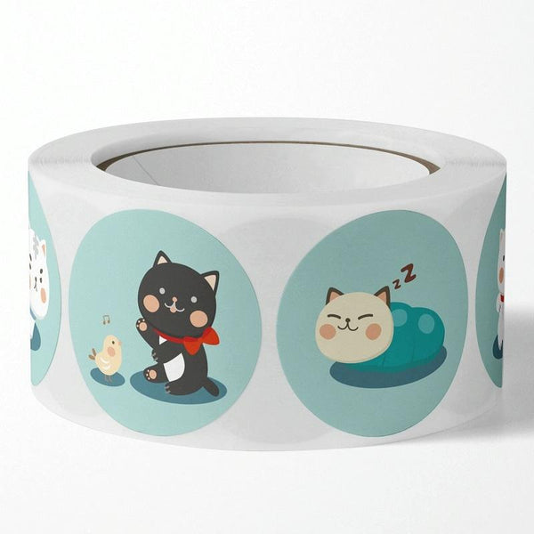 10 PCS Round Cartoon Animal Stickers Cute Hand-Made Sealing Stickers, Size: 25mm 500 / Rolls(C95)