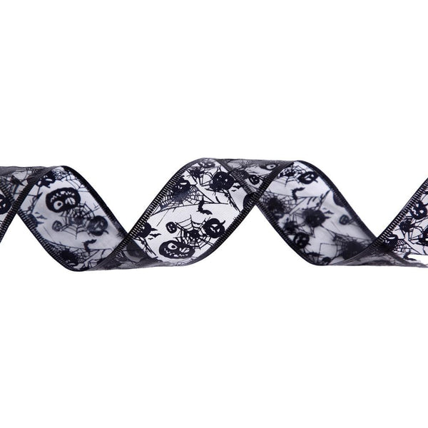 10m Halloween Decoration Gold-stamped Cartoon DIY Bow Ribbon(Black Pumpkin Spider Web)