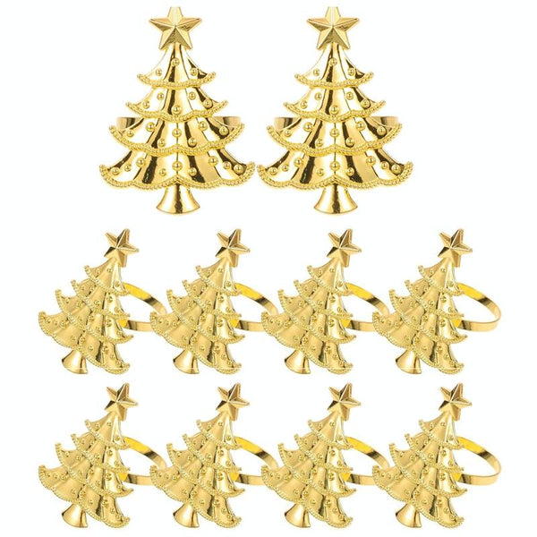 10pcs /Bag Christmas Tree Napkin Rings Metal Napkin Buckles Hotel Dinner Table Decoration(Gold)