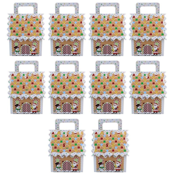 10pcs Christmas Candy Boxes Kraft Paper Christmas House Handbag Candy Boxes, Style: Large White Edge