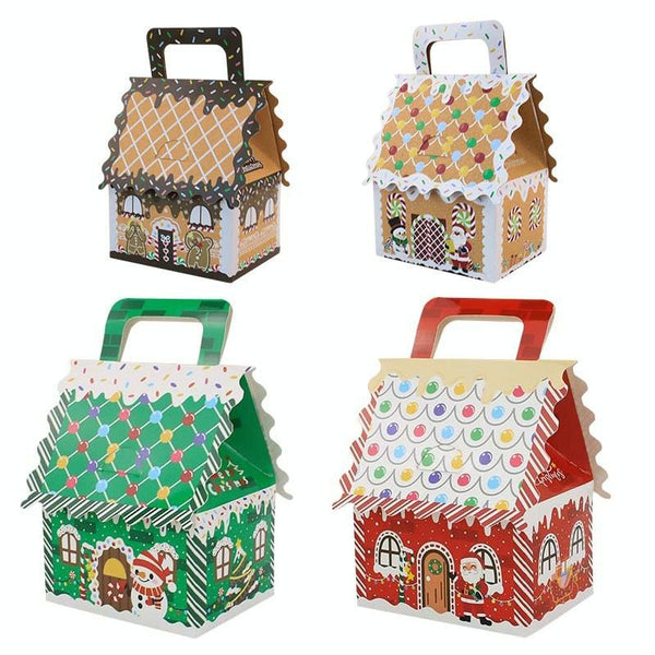 10pcs Christmas Candy Boxes Kraft Paper Christmas House Handbag Candy Boxes, Style: Small White Edge