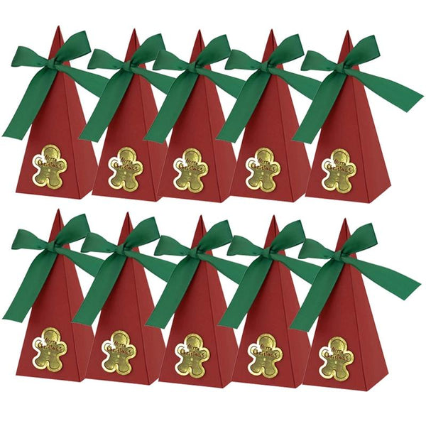 10pcs Christmas Candy Boxes Triangle New Year Party Xmas Gift Paper Packaging Box, Style: Gingerbread Man
