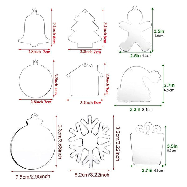 10pcs Clear Acrylic Christmas Decoration Hangers DIY Blank Xmas Tree Ornament With Rope, Style: Hat