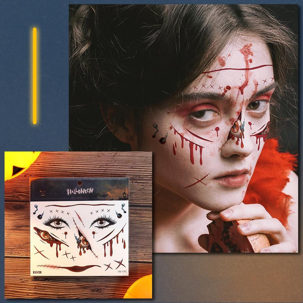 10pcs Halloween Scar Waterproof Tattoo Sticker Simulated Face Horror Stickers, Pattern: RM-040