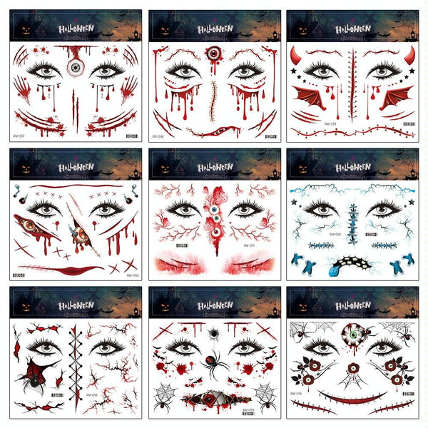 10pcs Halloween Scar Waterproof Tattoo Sticker Simulated Face Horror Stickers, Pattern: RM-044