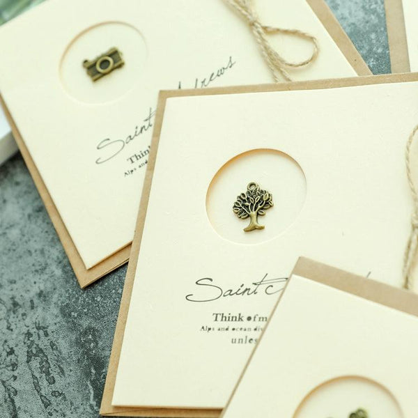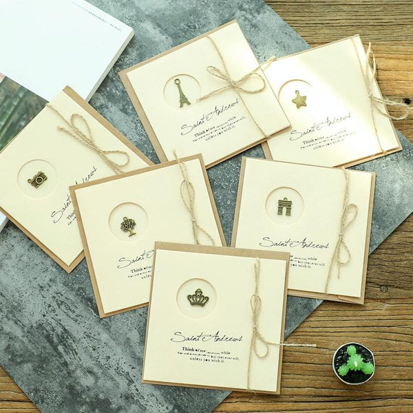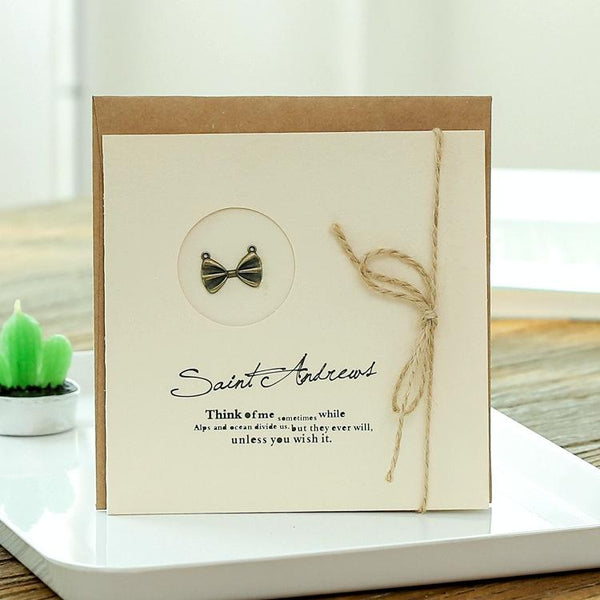 10pcs Vintage Metal Gift Greeting Card Cowhide Envelope Holiday Card(03 Bow)