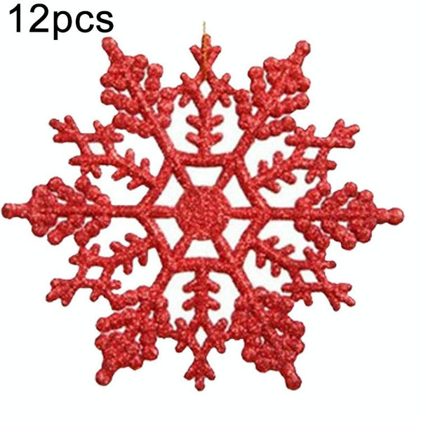 12 PCS Christmas Tree Ornaments Acrylic Snowflake Pieces Decorative Pendant Loose Powder, Diameter: 10cm(Red)