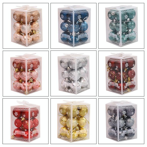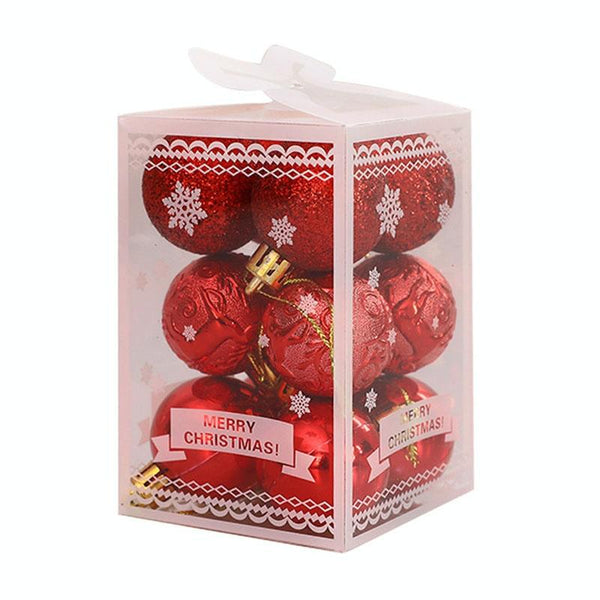 12pcs/pack 4cm Christmas Ball Special Shape + Glitter + Bright Set(Red)