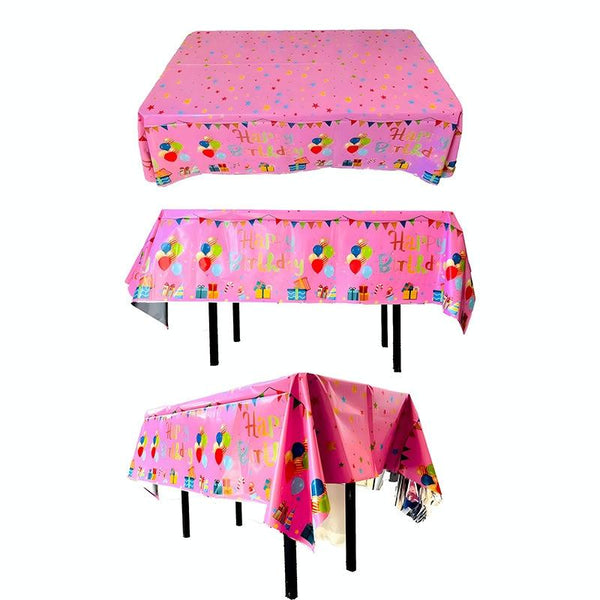 137x183cm Happy Birthday PET Aluminum Film Tablecloths Disposable Waterproof Party Decorative Table Cloth, Style: English Pink Balloon