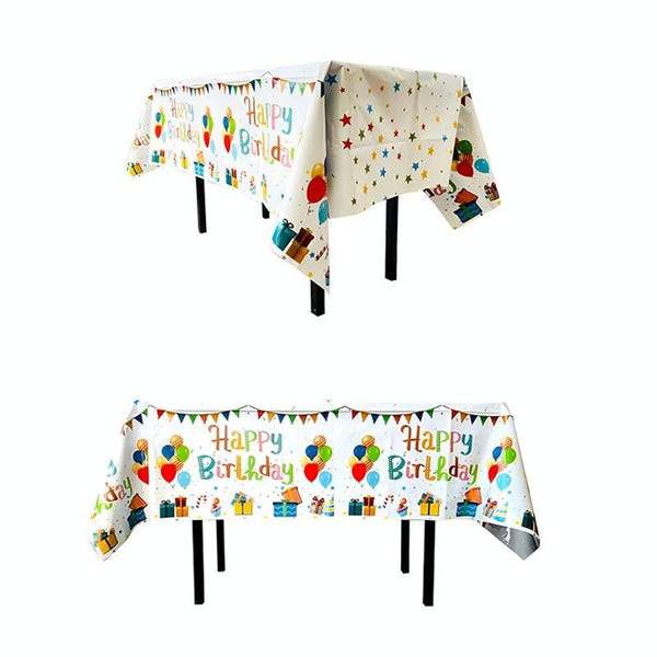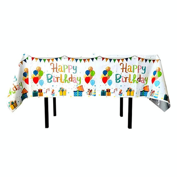 137x183cm Happy Birthday PET Aluminum Film Tablecloths Disposable Waterproof Party Decorative Table Cloth, Style: English White Balloon