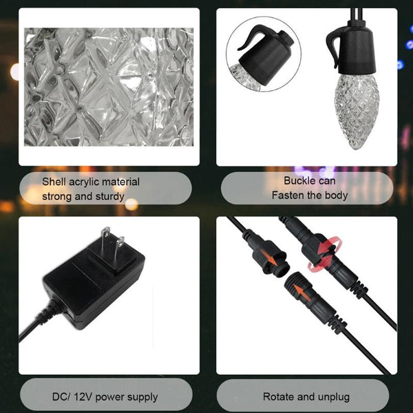 15m 20 Bulb NO RC 12V C35 LED String Lights Garden Christmas Waterproof Strawberry Candle Light, EU Plug(RGB)