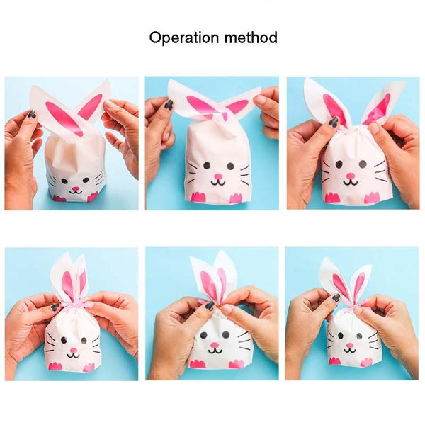 1bag Cartoon Rabbit Ears Gift Packaging Bags Candy Baking Snowflake Cookies Bags, Size: 10x17cm(Pink Black Mouth)
