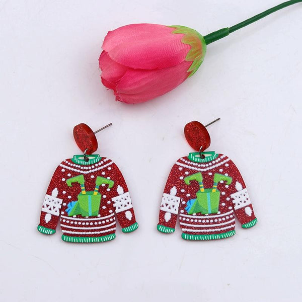 1pair Sweater Christmas Earrings Cute Elk SnowmanEarstuds, Color: Gift Box Red