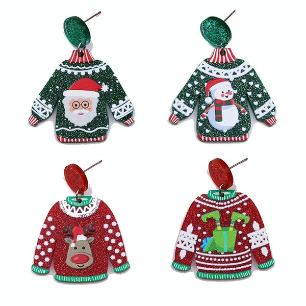 1pair Sweater Christmas Earrings Cute Elk SnowmanEarstuds, Color: Snowman Green