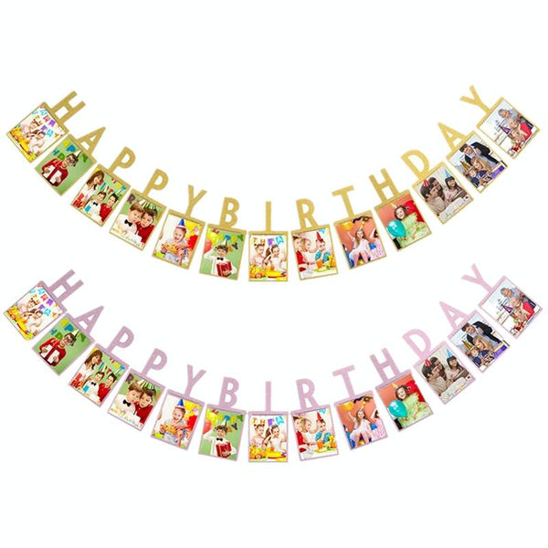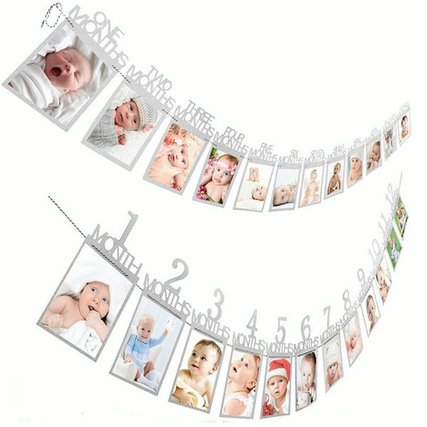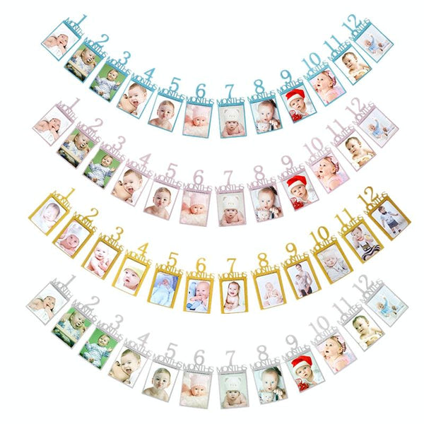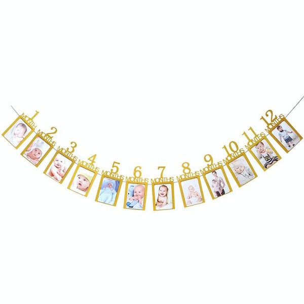 1St Baby 12 Months Birthday Pull Flag Photo Wall Slogan Banner Month Photo Clip Flower(Gold number)