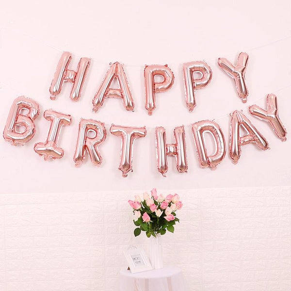 2 PCS 16 Inch Happy Birthday Letter Aluminum Film Balloon Birthday Party Decoration Specification(US Version Rose Gold)