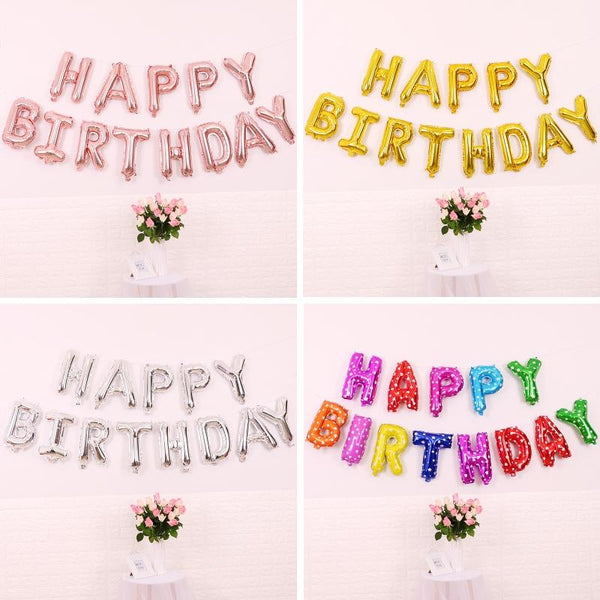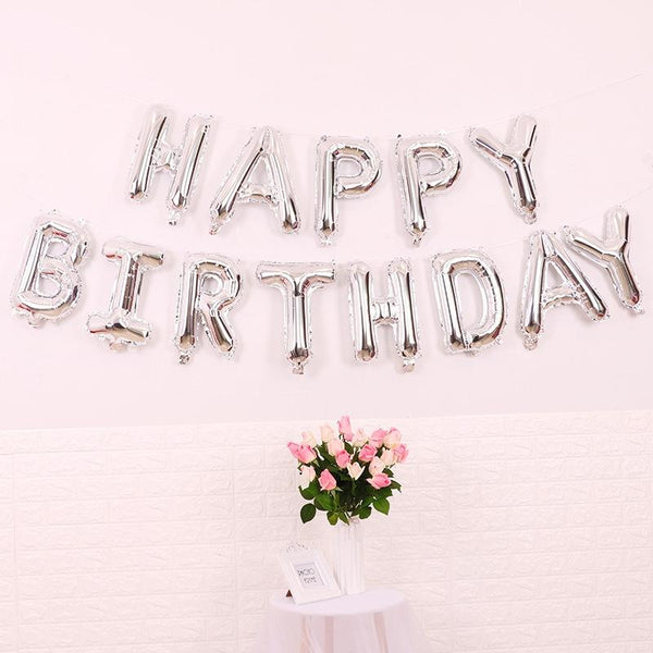 2 PCS 16 Inch Happy Birthday Letter Aluminum Film Balloon Birthday Party Decoration Specification(US Version Silver))
