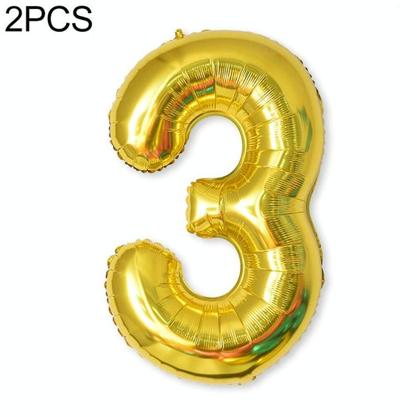 2 PCS 40 Inch Aluminium Foil Number Balloons Birthday Wedding Engagement Party Decor Kids Ball Supplies(3-Gold)