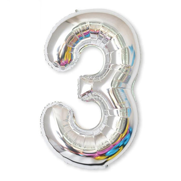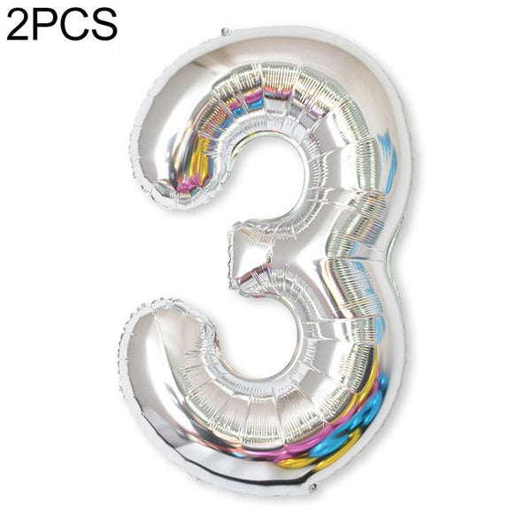 2 PCS 40 Inch Aluminium Foil Number Balloons Birthday Wedding Engagement Party Decor Kids Ball Supplies(3-Silver)
