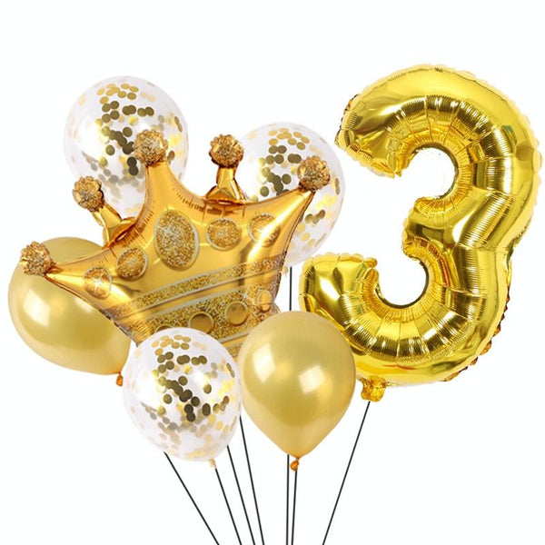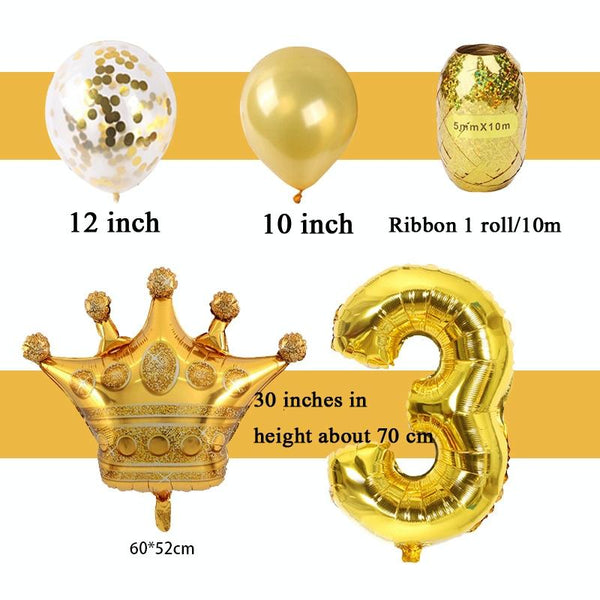 2 PCS Birthday Baby Children Golden Crown Aluminum Film Number Balloon Set Wedding Scene Decoration( Number 3)