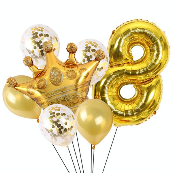 2 PCS Birthday Baby Children Golden Crown Aluminum Film Number Balloon Set Wedding Scene Decoration( Number 8)