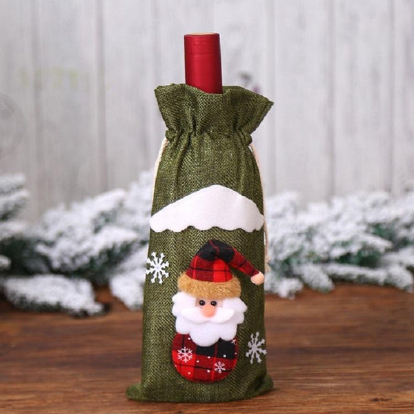2 PCS Christmas Gift Wine Bottle Dust Cover Bag Home Table Decor(Green old man)