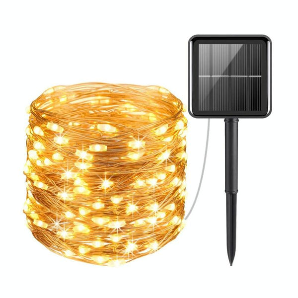 20m 200LED Solar Outdoor Waterproof Silver Wire Light String Christmas New Year Garden Decoration Garland Lights(Warm White Light)