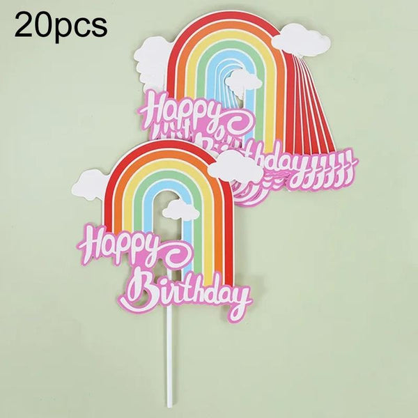 20pcs Birthday Party Cake Toppers Baking Cake Ornament Flags Dessert Decoration, Style: Rainbow 4