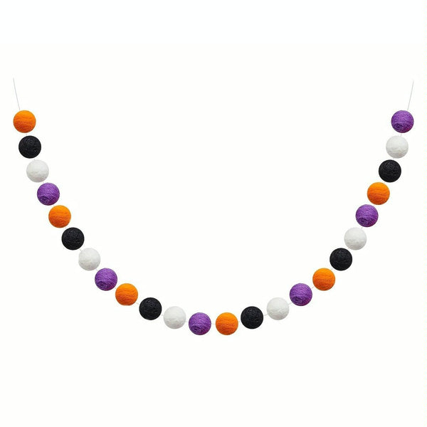 2m Halloween Felt Ball Pendant Horror Atmosphere Wool Ball Decoration(24 Balls)