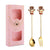 2pcs /Pack Christmas Gift Spoon Cartoon Fruit Fork Dessert Coffee Scoop, Style: Elk (Pink Box)
