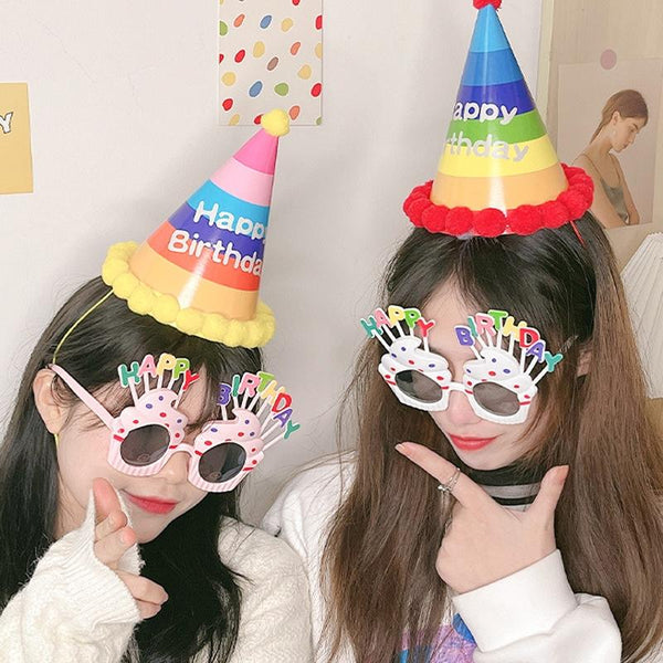 2pcs Party Glasses Children Hats Headwear Birthday Photo Decorations, Random Pattern Delivery, Specification: Glasses