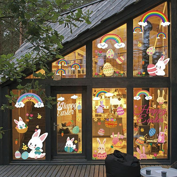 3 Packs Easter Egg Cartoon Glass Window Decoration Wall Sticker, Specification: Rainbow