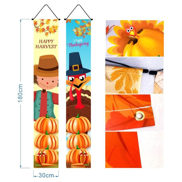 30 x 180cm Thanksgiving Day Couplet Decoration Porch Hanging Flag(Wood grain Friends Giving)