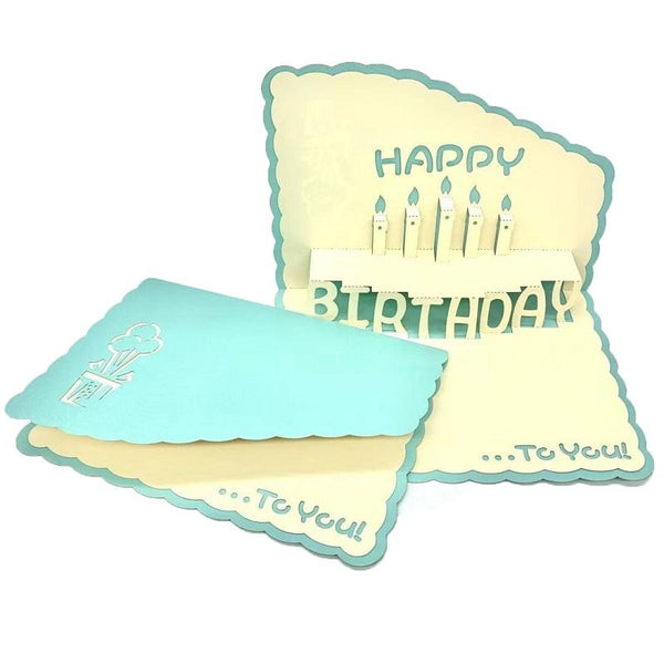 3D Paper Carving Hollow Greeting Card Birthday Wishes Thank You Card(Blue)