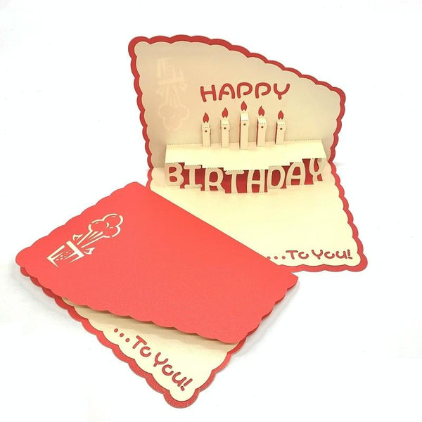 3D Paper Carving Hollow Greeting Card Birthday Wishes Thank You Card(Red)