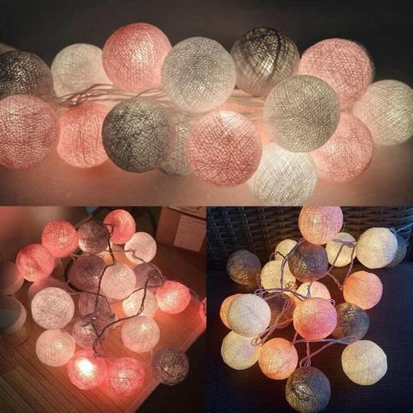 3M 20 Leds Cotton Ball Light String Holiday Wedding Christmas Party Bedroom Fairy Lights Outdoor LED Light Garland Decoration, Power Suupply: EU Plug(Pink)