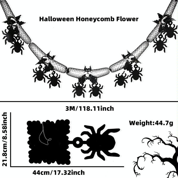 3m Halloween Honeycomb Garland Pendant Spider Bat Party Flag Scene Layout Props(Spider)
