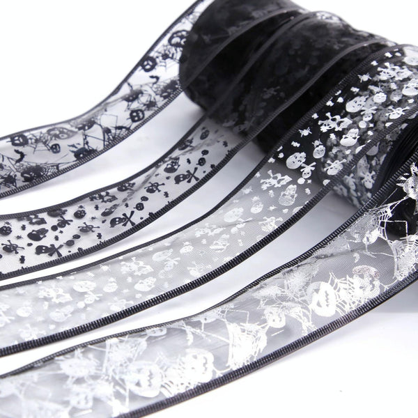 4m Halloween Decoration Gold-stamped Cartoon DIY Bow Ribbon(Black Skeleton)