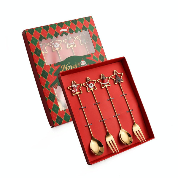 4pcs /Pack Christmas Stainless Steel Spoon And Fork Star Pendant Cutlery Gift Set, Specification: 410 Spoon Fork