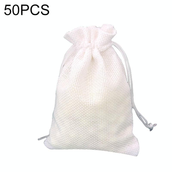 50 PCS Multi size Linen Jute Drawstring Gift Bags Sacks Wedding Birthday Party Favors Drawstring Gift Bags, Size:7x9cm(White)