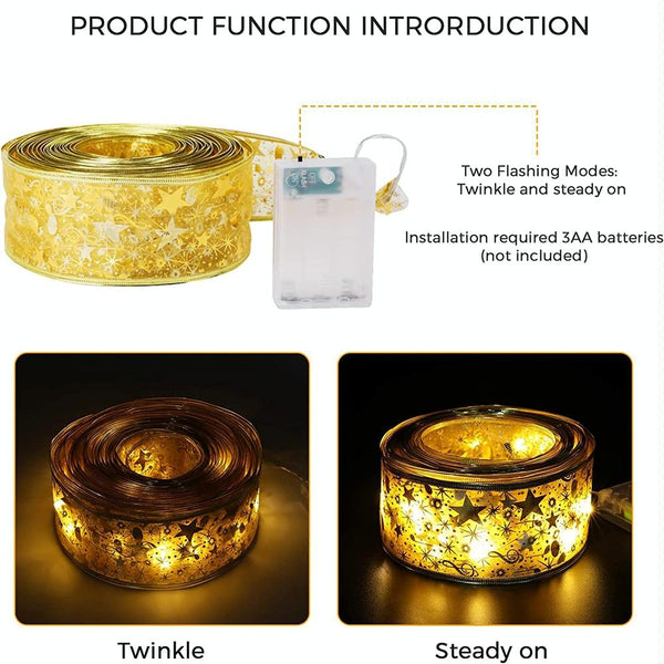 5m 50LEDs-USB LED Christmas Tree Decoration Bronzing Ribbon Lights(Gold-Warm White)