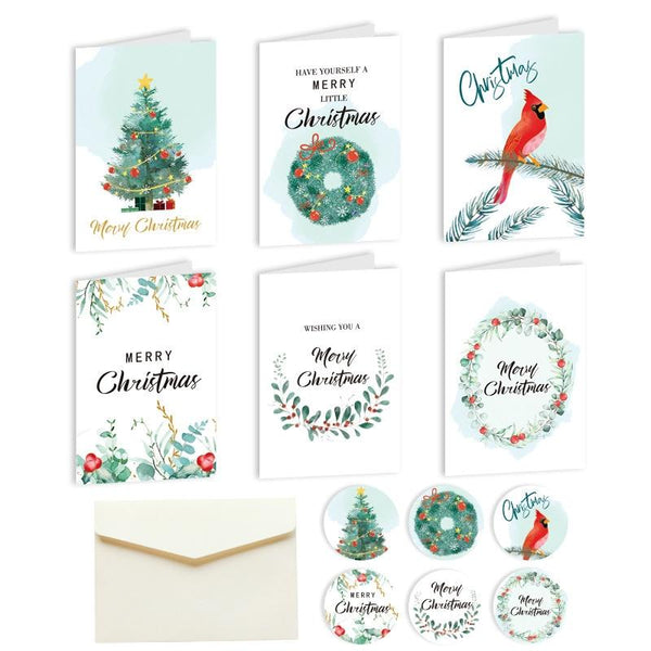 6 Fold Cards + 6 Envelopes + 6 Stickers Christmas Day Greeting Cards(MC8-94)