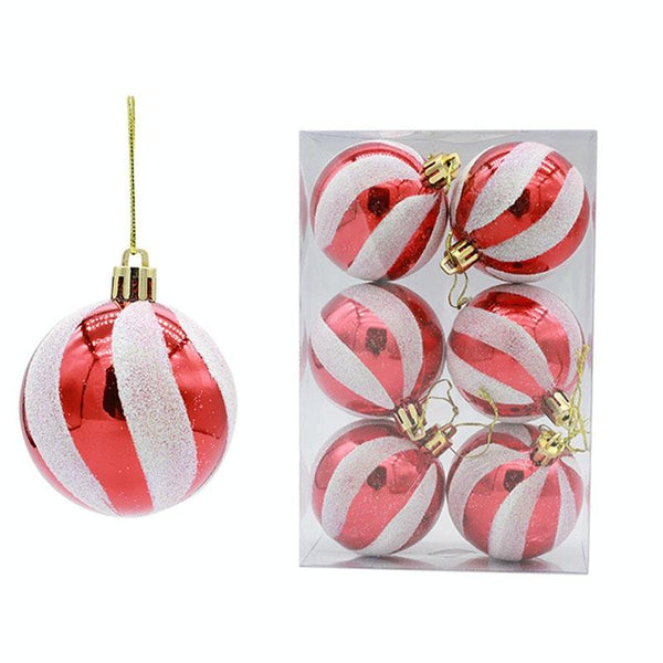 6pcs/pack 6cm Painted Christmas Ball Decoration Props(Red and White Spiral Stripes)